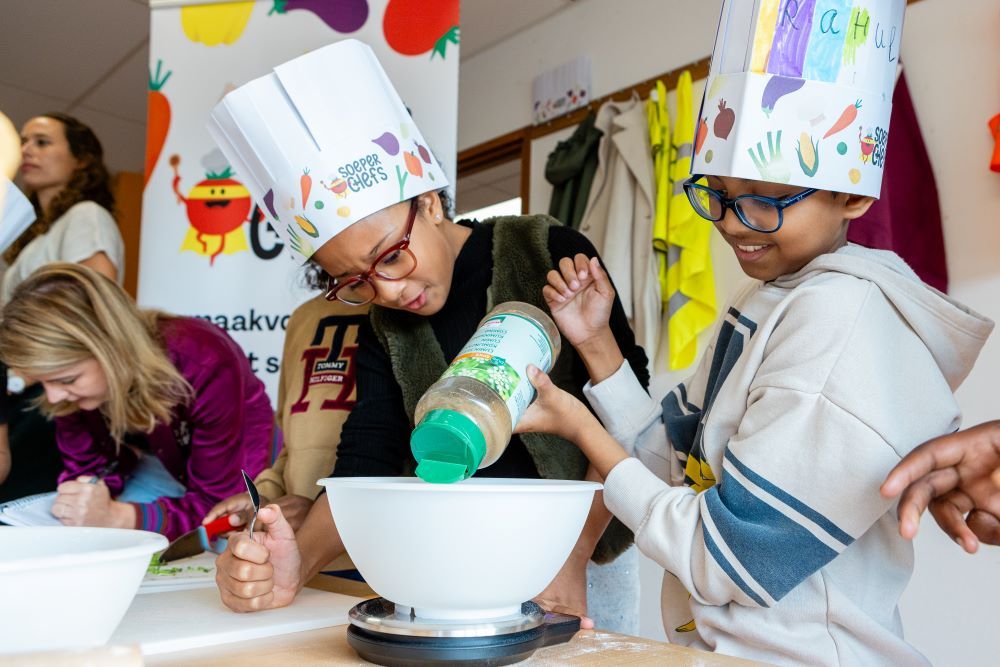 Ga samen boodschappen doen en laat je kind de groenten halen. Heb je een moestuin of kweekbak? Laat je kind dan helpen of eigen plantjes kweken. Ook samen koken kan hartstikke leuk zijn. Natuurlijk kost het wat meer tijd, maar we zien vaak dat kinderen meer bereid zijn om te proeven als ze bij het hele proces rondom het eten betrokken zijn. We organiseren daarom ook kooklessen op scholen met onze Soeperchefs.