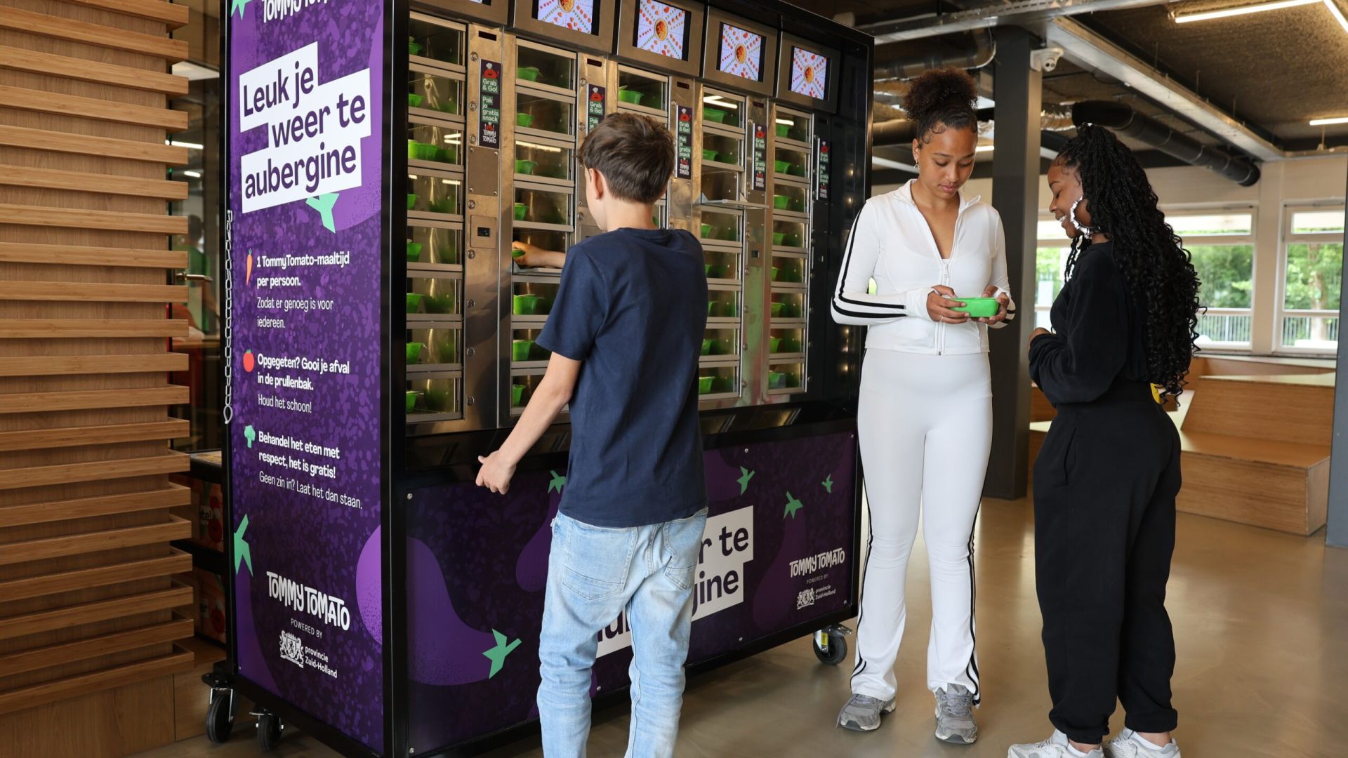 Vorig jaar plaatsten we een FEBO-muur op de Portus Julianaschool in Rotterdam. Niet met kroketten en kaassouflés, maar met warme TommyTomato-lunches. Binnen 10 minuten was alles op. Aan nieuwsgierige media verklaarden de middelbare scholieren dat ze onze lunch superlekker vonden.