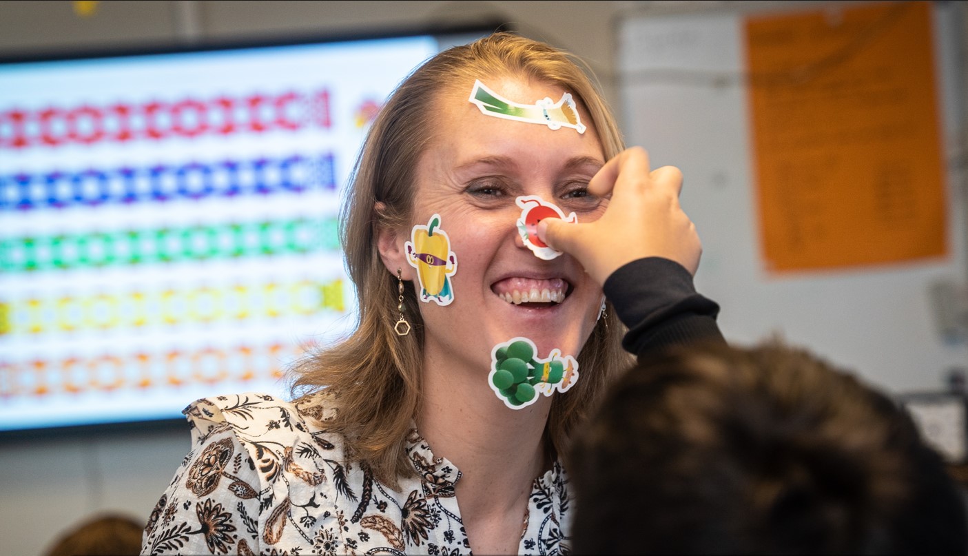 Marije: “We hebben het over het waarom van groente. Elke kleur groente heeft een eigen superkracht, wat doet die aubergine nou voor je lichaam? En bloemkool? We hebben het ook over suikers, vetten en eiwitten. In de bovenbouw gaan we etiketten lezen, zodat kinderen in de supermarkt zelf bewuste keuzes kunnen maken. En de reis van mond tot kont mogen we niet vergeten, die is ook heel leuk en belangrijk.”