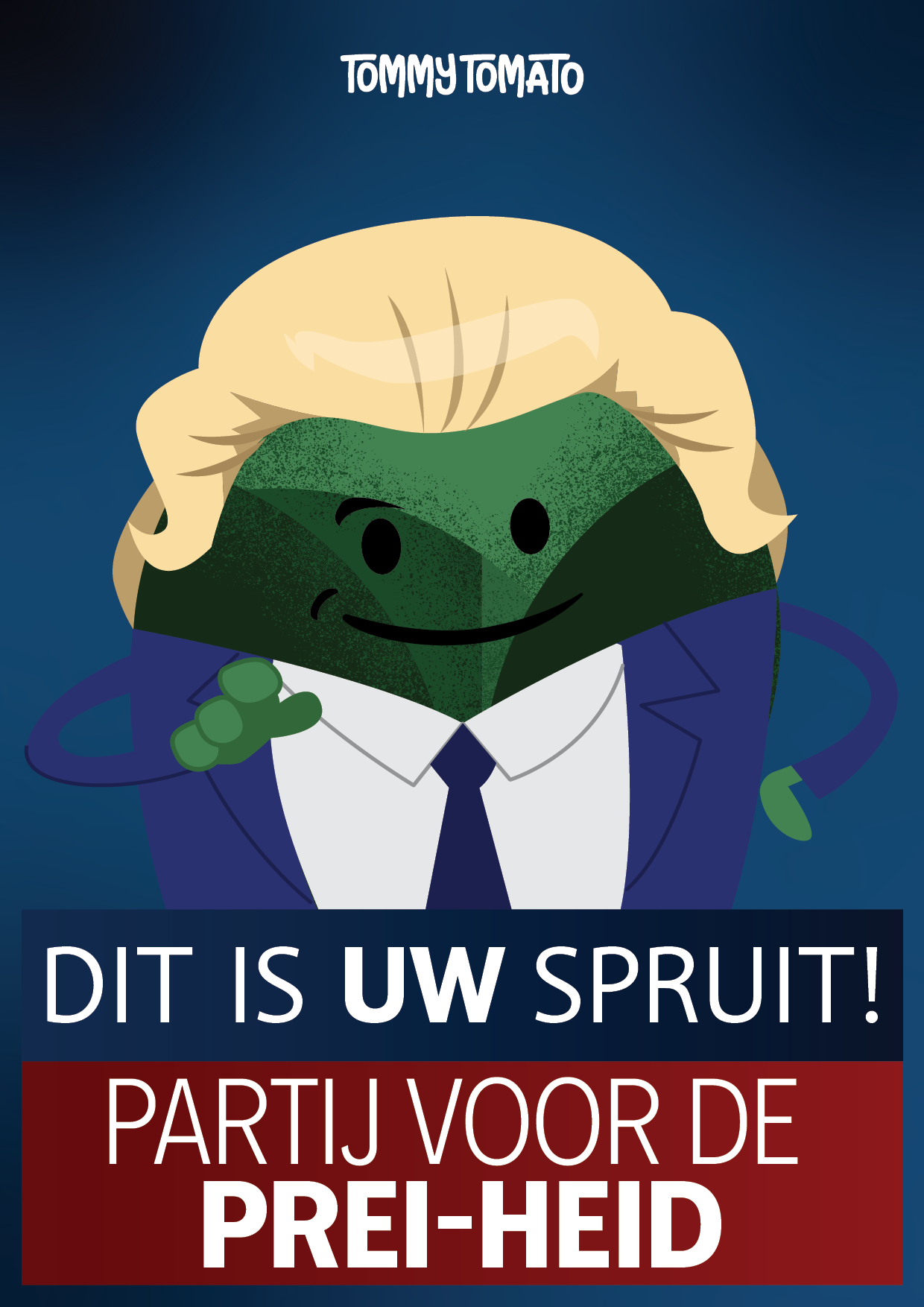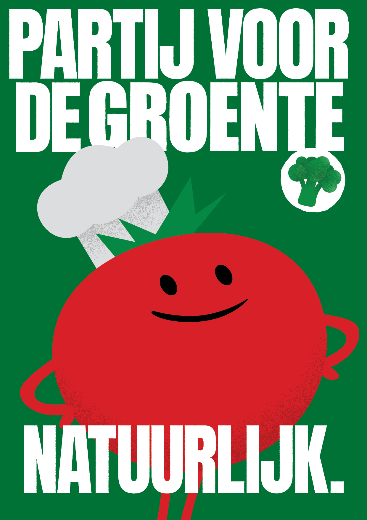 We hebben de posters van de politieke partijen vast een tikkie aangepast. Print ze uit, hang ze op, deel ze op social media… Laten we groente op de politieke agenda zetten!