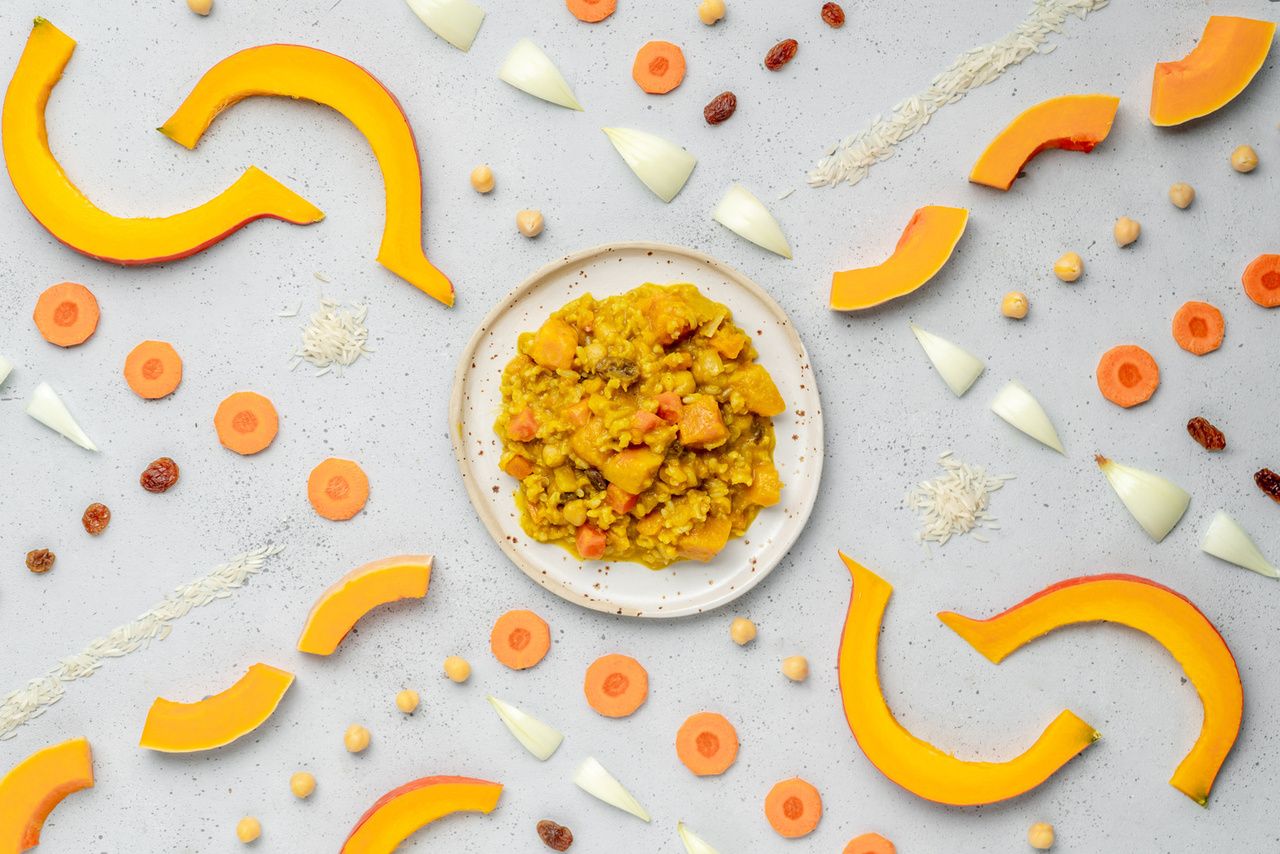Laat je betoveren door de geur van kruidige pompoencurry met de Pompoenzoen! Een feest voor je zintuigen, met zachte pompoen, zoete rozijnen en romige kokosmelk. En wist je dat de kikkererwten en pompoen in dit gerecht ook nog eens supergezond zijn? Een win-win situatie!